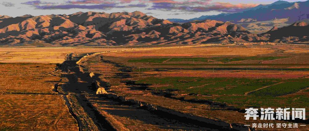 祁连山下,甘肃山丹汉明长城犹如一条巨龙蜿蜒盘旋在漫漫戈壁。