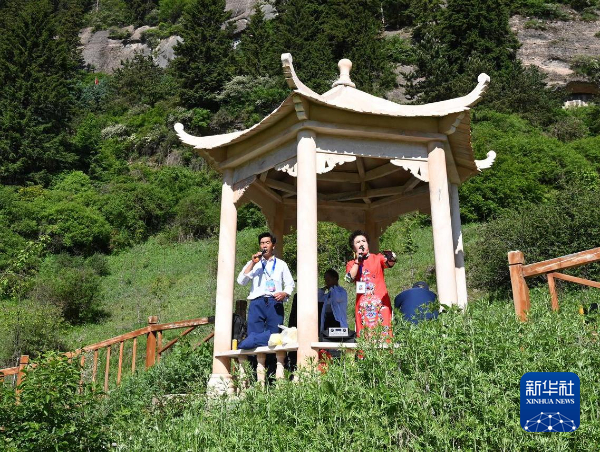 6月13日,在甘肃省临夏回族自治州和政县松鸣岩景区,花儿爱好者表演花儿。新华社记者 范培珅 摄