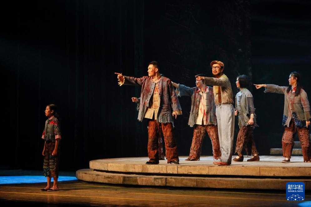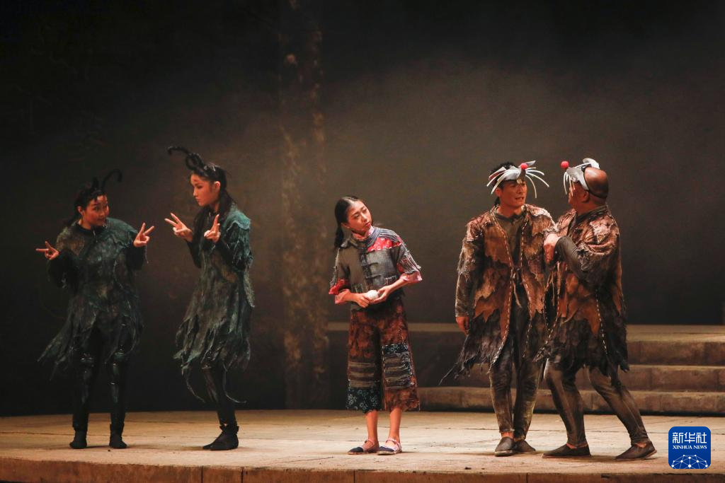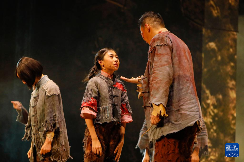 8月29日晚,演员在兰州音乐厅表演新版红色儿童剧《大豆谣》。新华社记者 方欣 摄