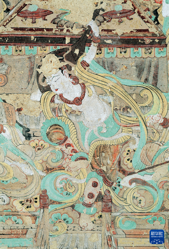 莫高窟第112窟的反弹琵琶图。敦煌研究院供图