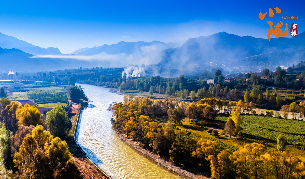 蓝天衬托丹霞,碧水清流穿梭于绿色田园。目之所及,阡陌交错,房舍俨然,美丽乡村一派祥和。