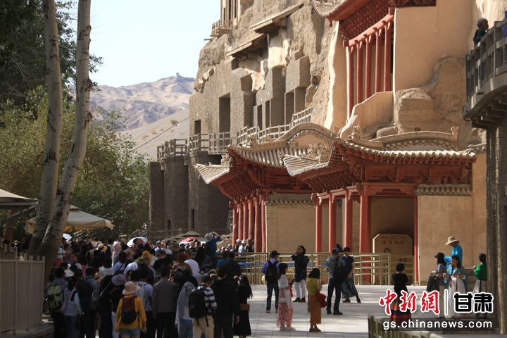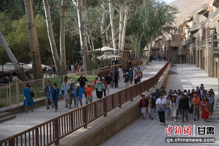 今年以来,甘肃省敦煌市采取推出旅游优惠政策、丰富文旅业态、增开加密航线航班、提升旅游服务水平等多项措施,吸引众多游客参观游览。张晓亮 摄