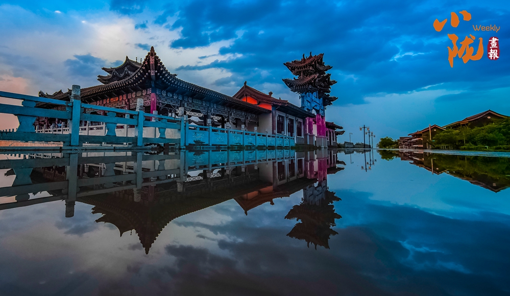 南湖讨赖河畔晚霞如辉,夜景璀璨,构成一幅美丽的夏日画卷。