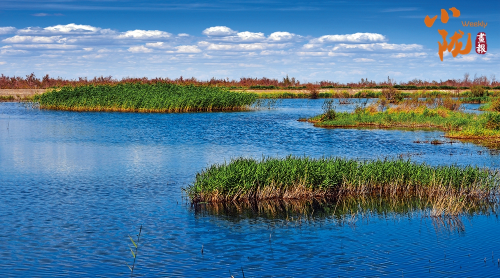 大大小小十几座人工湖,像一颗颗珍珠一样镶嵌在戈壁滩上。