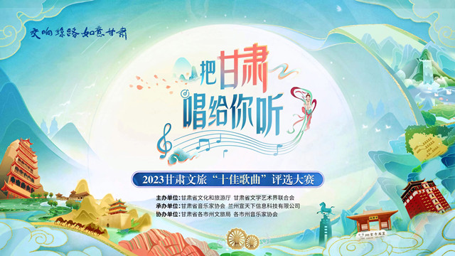 为进一步提高全省音乐艺术创作水平,丰富旅游文化内涵,大力提升甘肃旅游的知名度和影响力,充分发挥音乐赋能旅游产业发展的作用,由省文化和旅游厅、省文学艺术界联合会主办,省音乐家协会、兰州宣天下信息科技有限公司承办,各市州文旅局、各市州音乐家协会协办的“把甘肃唱给你听”2023甘肃文旅“十佳”歌曲大赛将于9月25日正式启动,以歌曲的形式,展示各地文旅形象,唱响如意甘肃之美。
