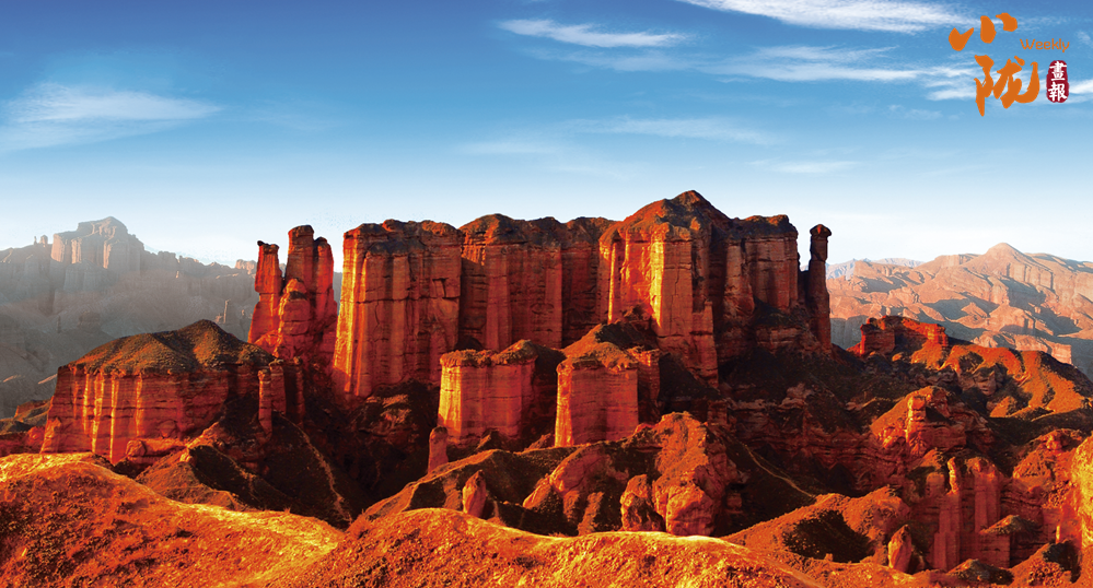 冰沟丹霞以砂岩地貌遗迹景观为主体,是国内窗棂状宫殿发育最好、规模最大的地质地貌遗迹,是“窗棂状宫殿式丹霞”的命名地。