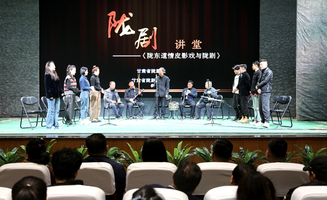 10月14日上午,由省陇剧院和省陇剧艺术研究会共同举办的“陇剧讲堂”在百姓戏曲剧场再次开讲。本次讲堂邀请陇剧的“娘家人”―――陇东道情敬家班一行7人,在中国陇东道情皮影戏交流演出期间,以《陇东道情皮影戏与陇剧》为主题,与省陇剧院业务人员现场交流、演唱,分享原汁原味的陇东道情的唱腔及音乐。在理论与实践的双重思考中,感悟陇剧艺术的独特之美与思想意蕴。