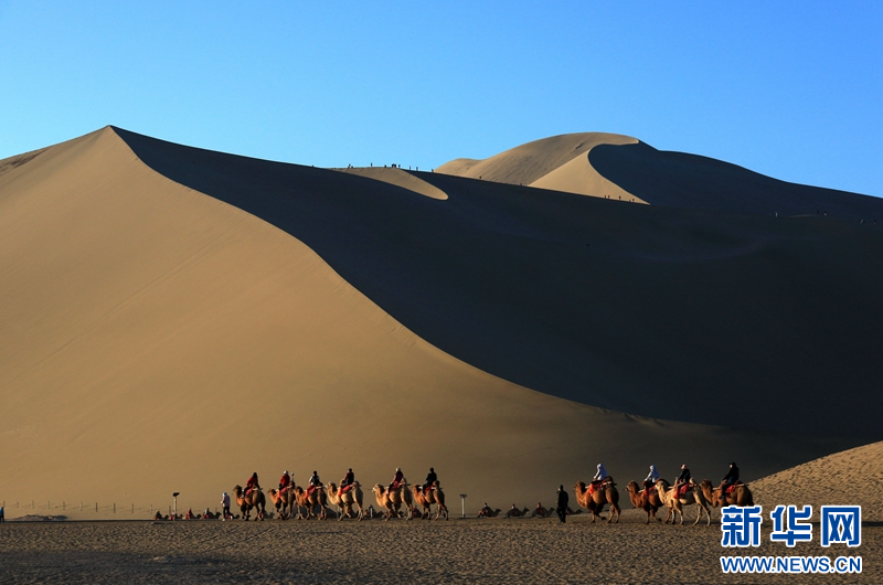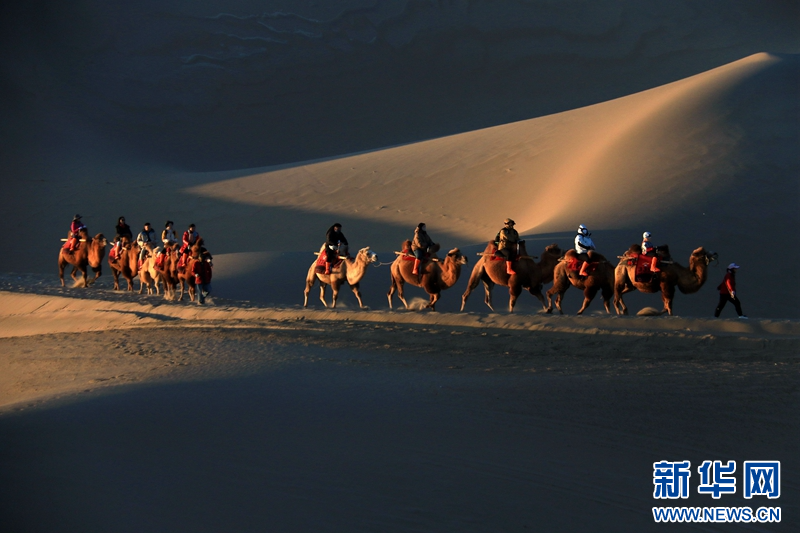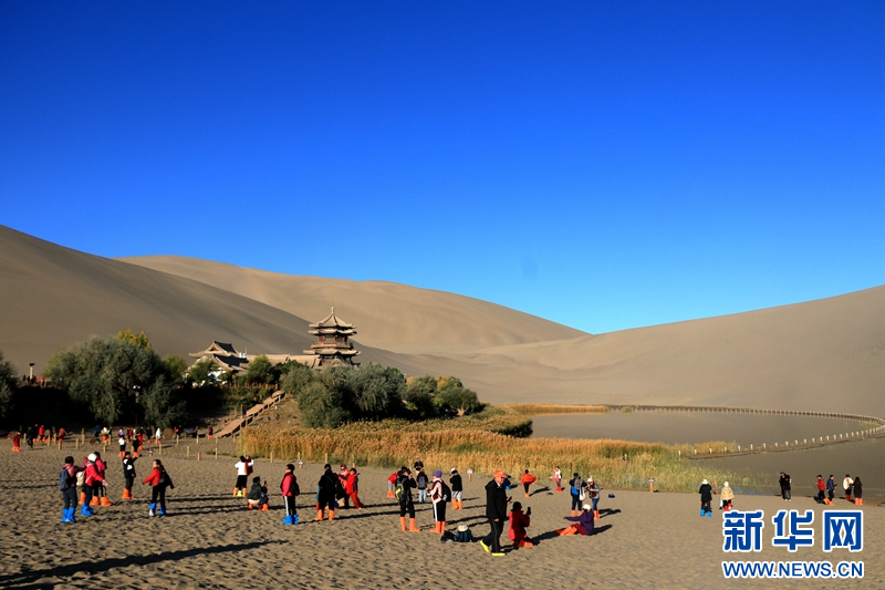 国庆假期过后,敦煌旅游热度不减。敦煌市文旅部门统计数据显示,10月7日以来,敦煌市鸣沙山月牙泉景区日均接待游客近万人。截至10月17日,莫高窟、鸣沙山月牙泉等景区接待游客671.4万人。新华网发(张晓亮 摄)