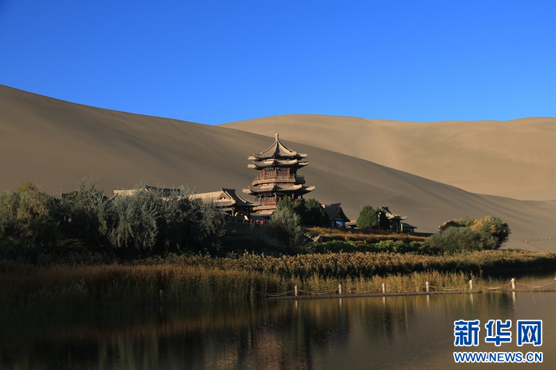 十月,甘肃省敦煌市鸣沙山月牙泉景区被秋色渲染,宛如画卷,吸引了不少市民游客前来欣赏大漠风光,体验丝路风情。