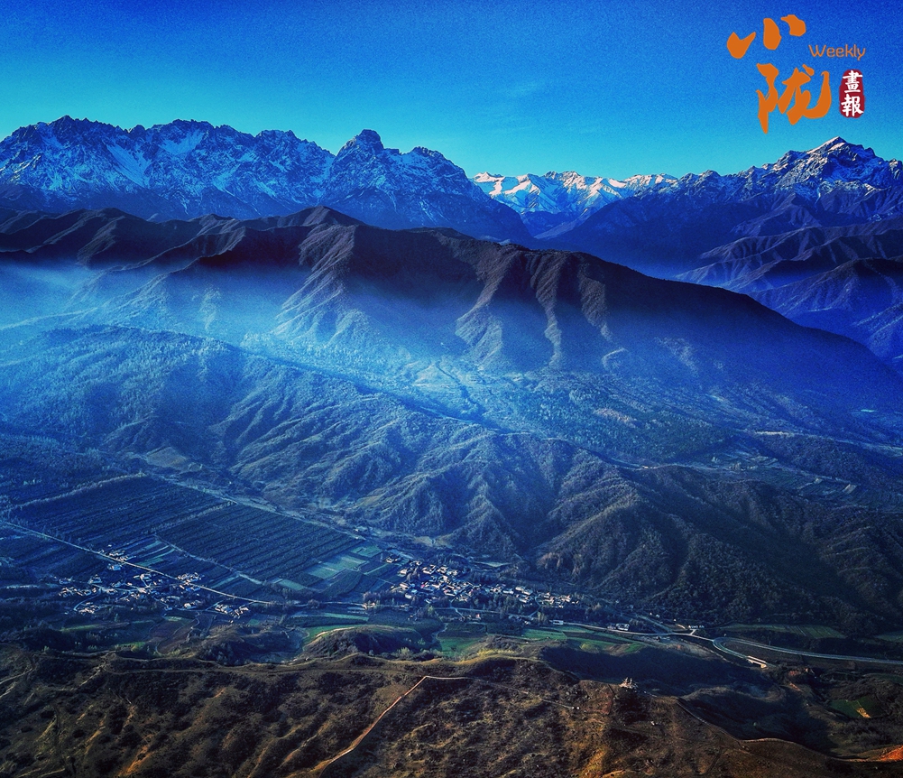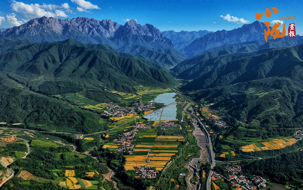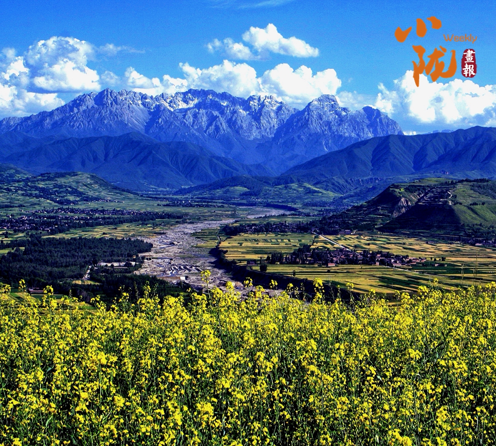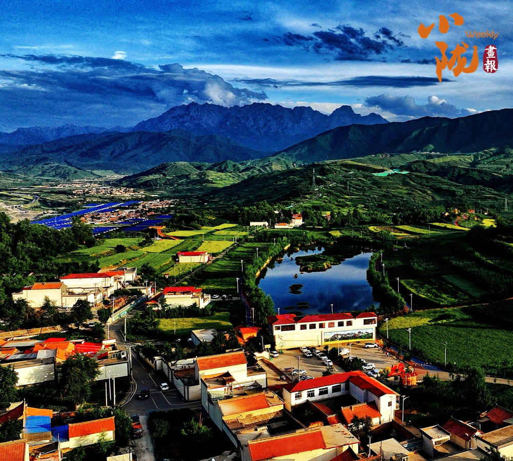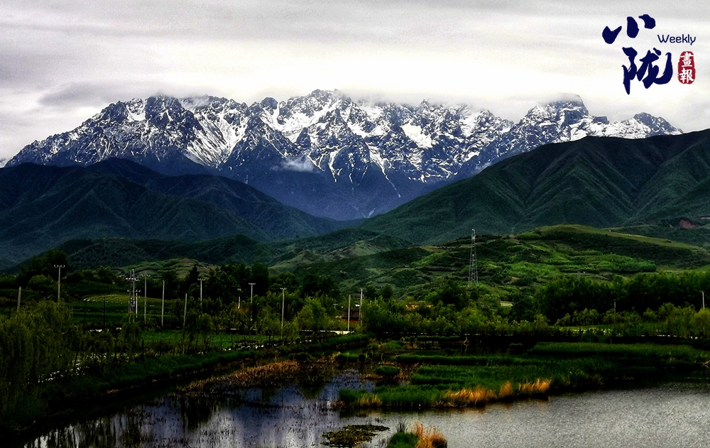 百里平川衬托着绵延群山,一边是麦黍飘香的一个个绿色盆地,一边是披苍着翠的太子山脉。