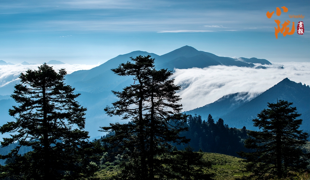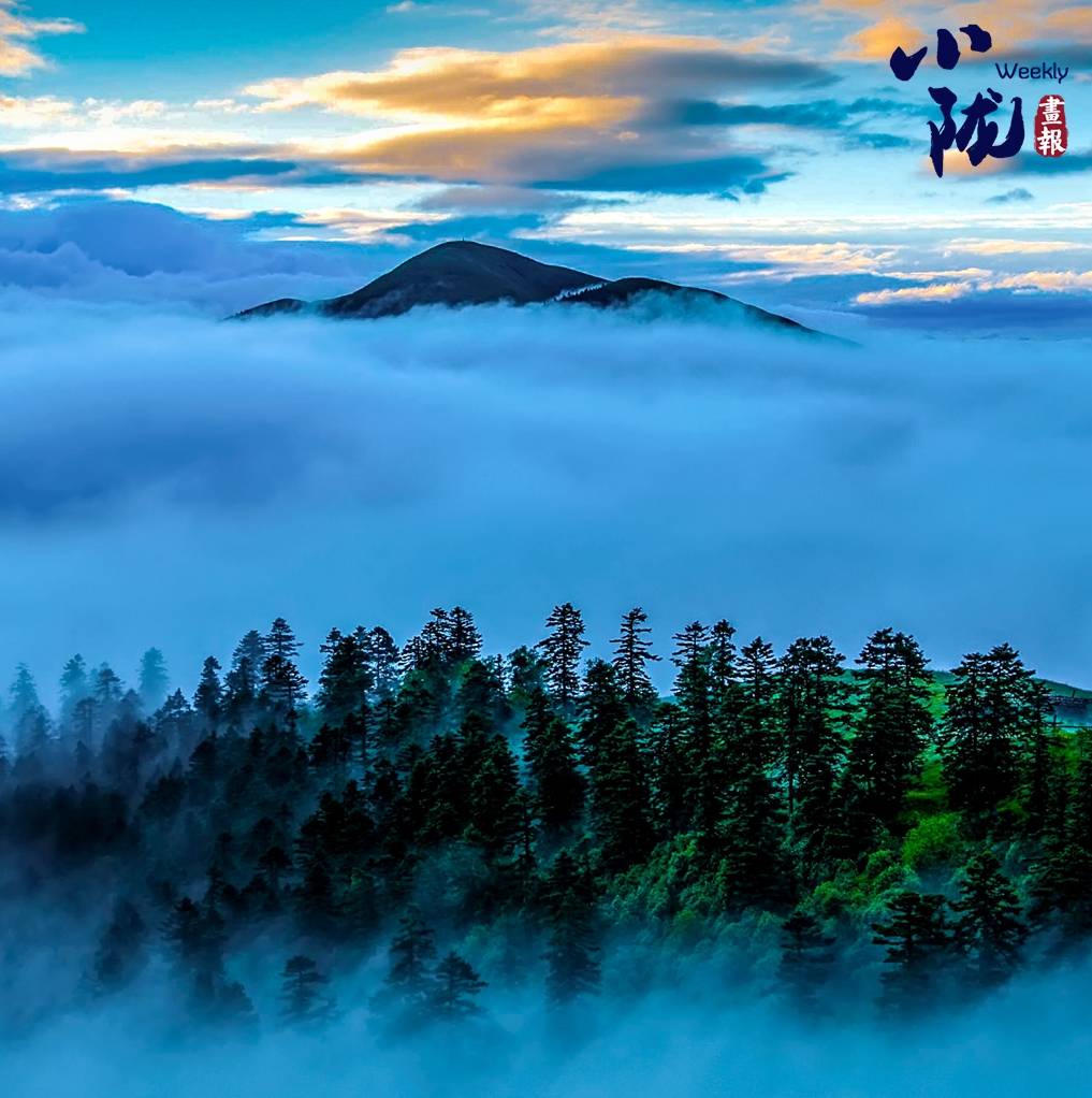 夕阳西下,光芒四射,整个天空散发着绚烂多彩的美。卓尼的松、山、雾、云不是孤立的,它们互为依偎,相映成趣。