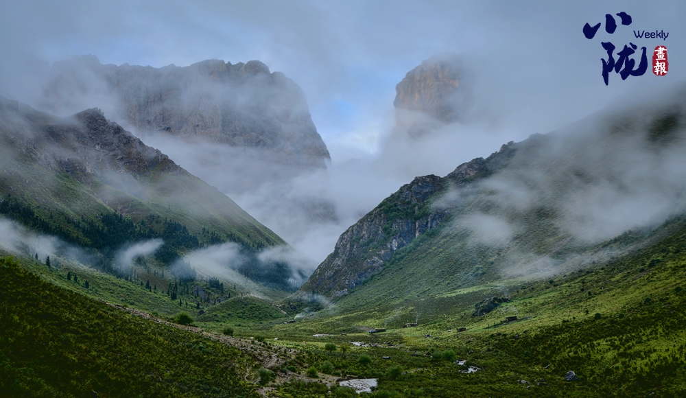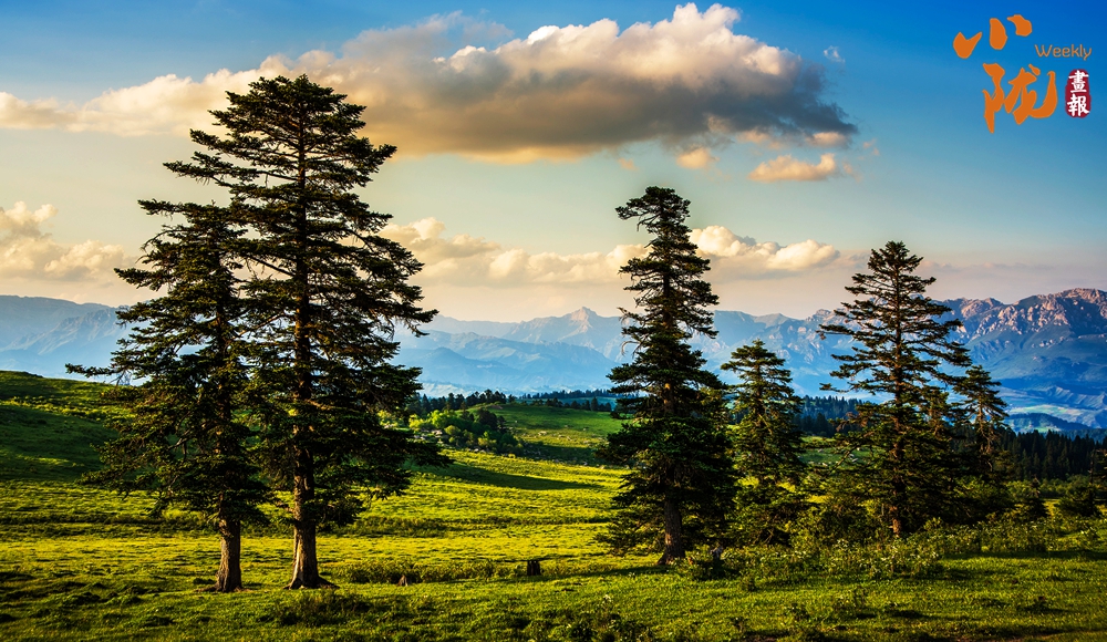 薄薄的清雾,连绵起伏的群山,挺直而生的青松,还有那歌唱的牧民和绿草地上的牦牛构成了一幅天然美景,点缀着如诗如画的大自然。