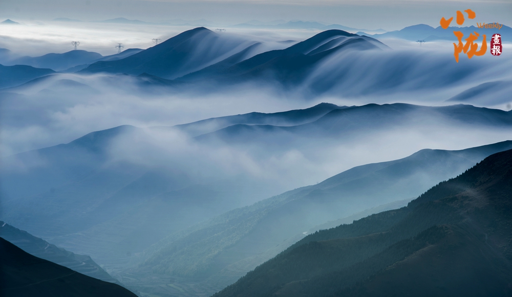 山峰起伏,峰峰叠叠,像一片望不到边的海洋。云雾缭绕,犹如仙女纱裙,蒙蒙迷迷,纵情舞动。