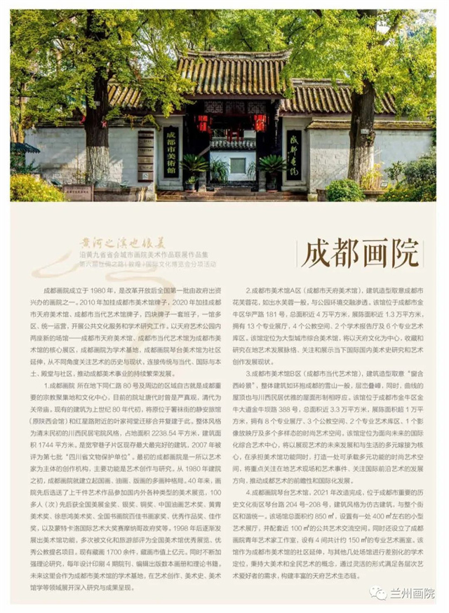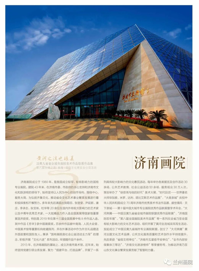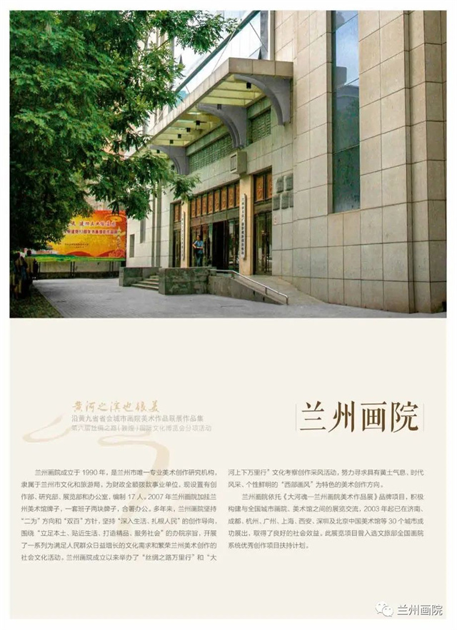 为深入贯彻落实习近平总书记对甘肃重要讲话重要指示批示精神,聚焦“黄河之滨也很美”城市品牌 ,依据兰州作为黄河文化和多民族文化交汇点的区域地理文化优势,更好地表现黄河的壮美,用艺术语言描绘黄河流域独特的文化和旅游资源,更好地宣传、树立沿黄城市文化形象,由兰州市文化和旅游局主办,兰州画院、兰州美术馆承办的第六届丝绸之路(敦煌)国际文化博览会分项活动“黄河之滨也很美——沿黄九省省会城市画院美术作品联展”定于2023年11月6日至11月30日在兰州美术馆展出,欢迎广大市民参观。
