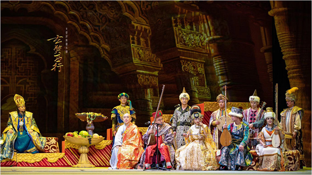 和而不同,美美与共。在这部剧中,我们不仅能看到丝绸之路上中国各民族乐器的一次历史大融合,还能看到中外传统乐器的融合,从而汇聚成了一个多元化、多民族的文化盛会,开启了一段当代音乐家践行“一带一路”倡议的新丝绸之路文化旅程。同时,民族器乐剧《玄奘西行》复排也是在深化国有文艺院团改革背景下,中直院团对地方院团精准扶持、深入合作交流的一次成功探索,是国家对地方文化帮扶首次以优秀品牌剧目落地形式开展,开启央地文化帮扶的新模式,体现了“国家队”的担当与责任,为甘肃文艺事业增添了一张“新名片”。(文/甘肃省文化和旅游厅 王晶 甘肃演艺集团 吴强 图/甘肃省歌舞剧院 郭一)