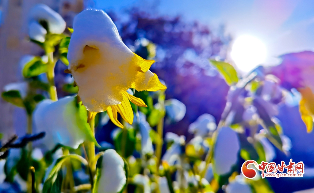11月5日,受寒潮侵袭,甘肃省张掖市出现降温降雪天气。雪后初晴,张掖市中央文化公园内,银装素裹,景色迷人,宛若画卷。