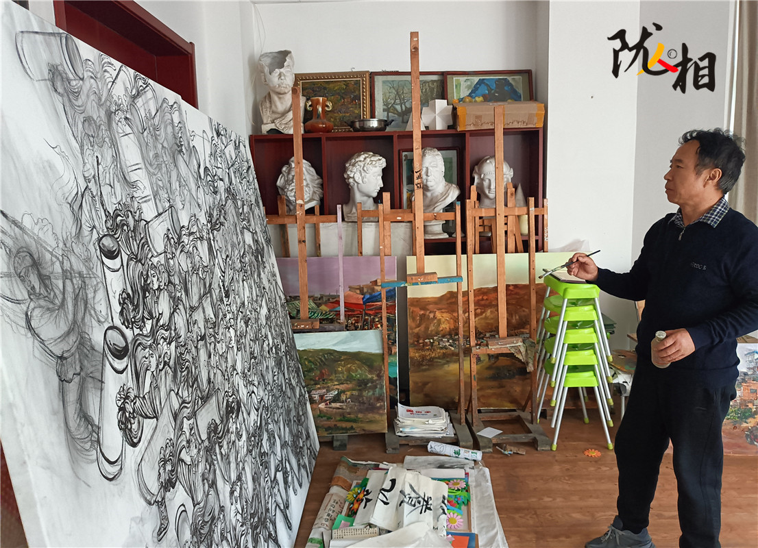 李建春说,保存的这幅画比课堂上的要复杂一些,他画了近3个小时,作画到后面整个人大汗淋漓。