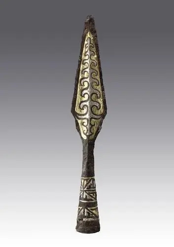 鋄(jiǎn)金银铁矛·战国晚期·马家塬遗址出土·甘肃省文物考古研究所藏