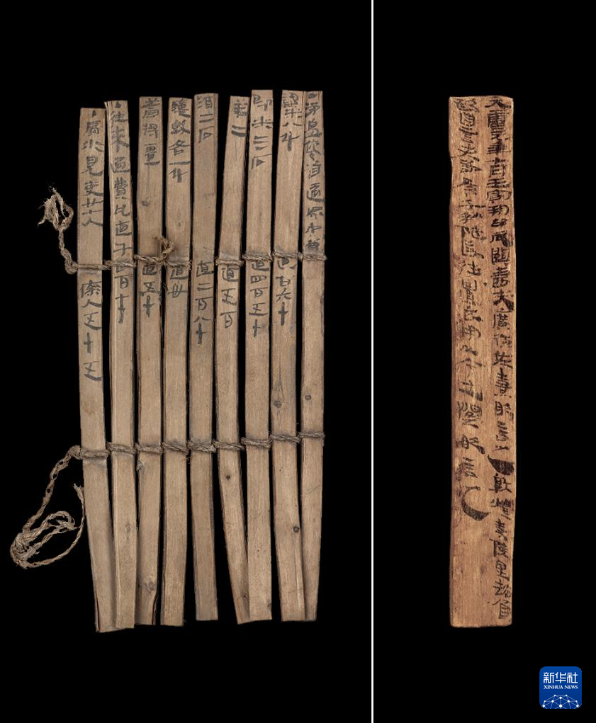拼版照片:汉简《居延里程简》(左图)和《悬泉里程简》。新华社发(甘肃简牍博物馆供图)
