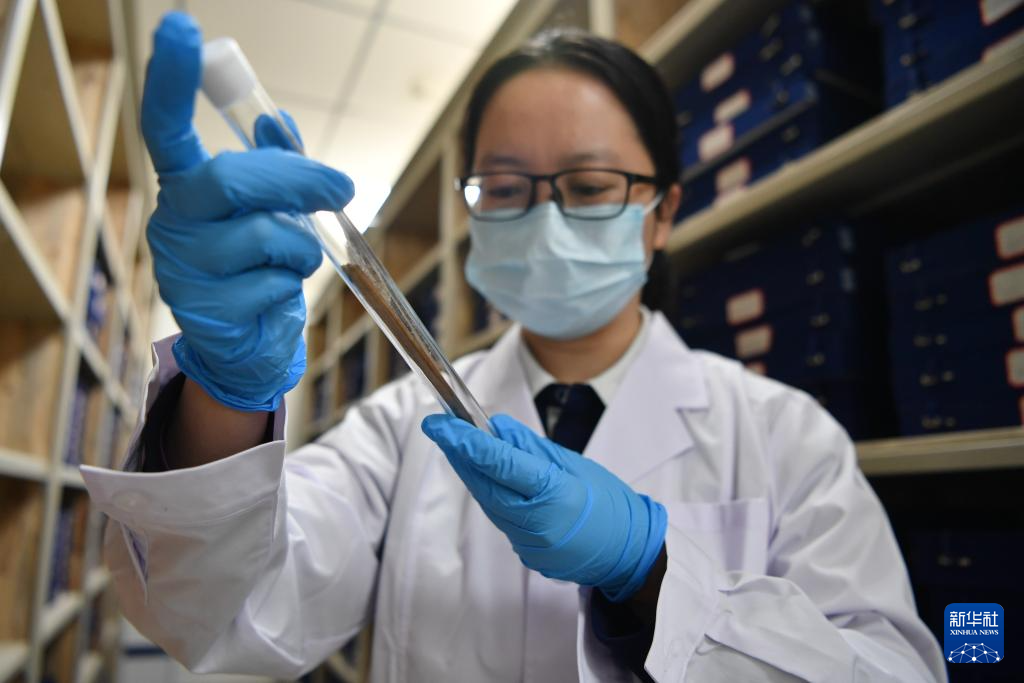甘肃简牍博物馆科技保护部文物库房管理员进行日常检查(10月26日摄)。新华社记者 陈斌 摄