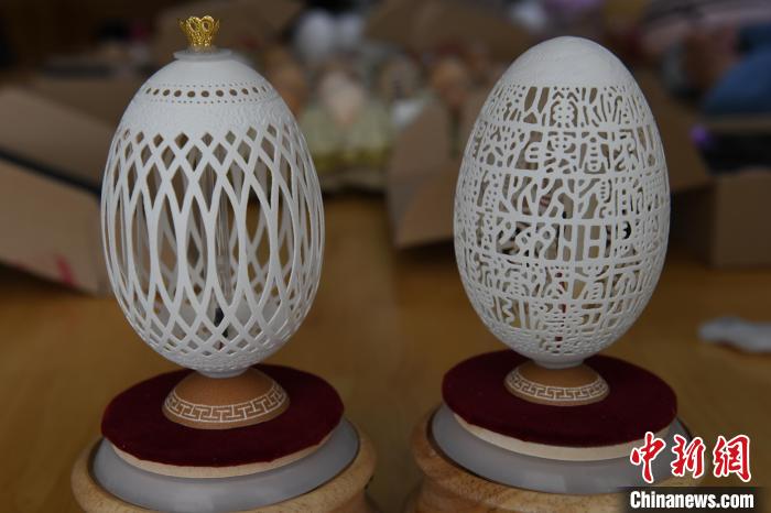 蛋雕,就是以禽类的蛋壳为画布,以刻刀为笔,融合了绘画与雕刻的综合技法,在脆薄的蛋壳上雕琢成画的一门艺术形式。戴文昌 摄