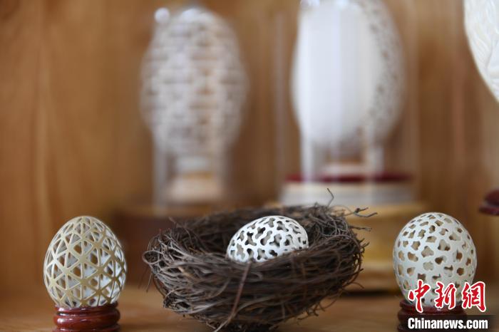 图为鸟蛋蛋雕作品展示。戴文昌 摄