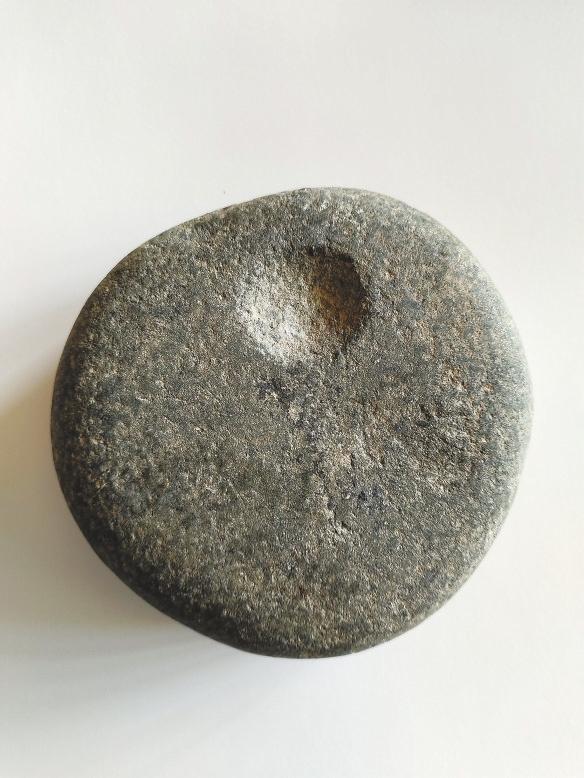 齐家文化的“盘状石器”除“敲砸器”以外,还有一点比较特殊,其双面分别琢制有日纹和月纹。目前所知,这类“盘状石器”只在齐家文化遗存中出现,是齐家文化石器的特有器型,石质大多为砾石、河砾石。这种齐家文化特有的琢纹盘状石器,学界尚未有统一命名,通常所见为:“圆形见手窝敲砸器”“刻符石”“刻符石器”。民间俗称为:“练功石”“日月石”“星月石器”等。
