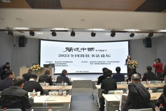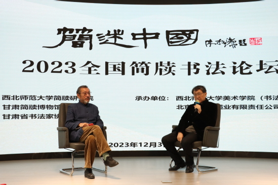12月3日,由西北师范大学简牍研究院、甘肃简牍博物馆、甘肃省书法家协会主办,西北师范大学美术学院、北京一得阁墨业有限责任公司承办的“简述中国”——2023全国简牍书法论坛在西北师范大学国际学术交流中心举行。