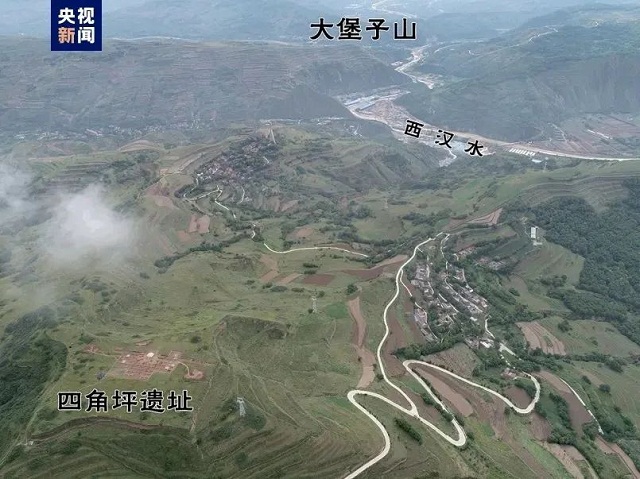 甘肃礼县四角坪遗址坐落于礼县县城东北四格子山顶部,海拔1867米,原有山顶被削平,形成面积约2.8万平方米的山顶平台,勘探发现平台外围有夯土墙环绕,内有大量夯土建筑基址。