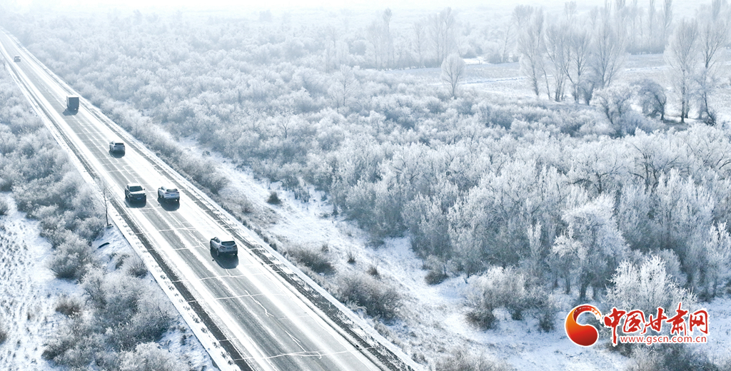 2月4日,甘肃省张掖市高台县南华镇一带,树木凝霜挂雪,琼枝玉柳,现雾凇奇观,身临其境宛如置身于一个冰清玉洁的童话世界。