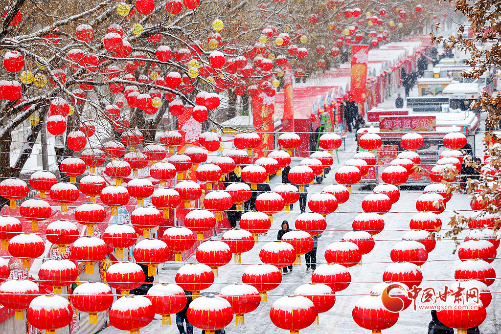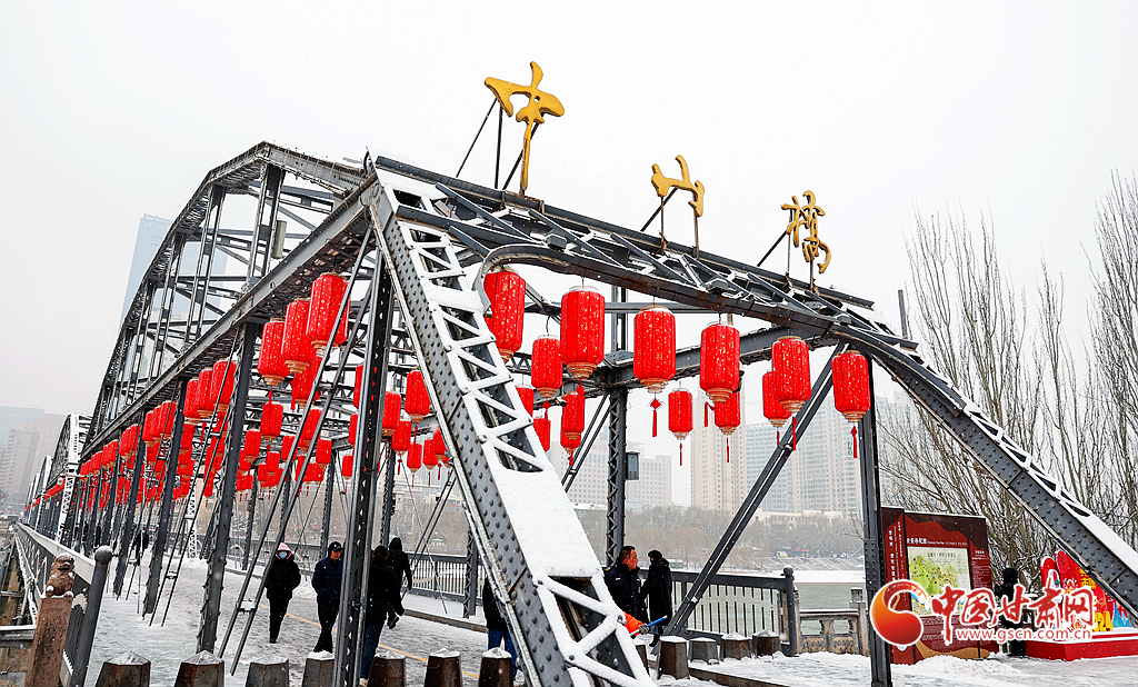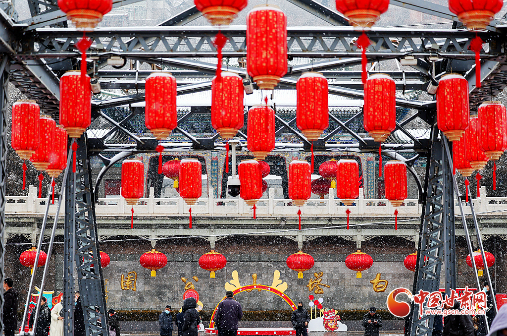 近期,甘肃省兰州市迎来降雪天气,在百年中山铁桥和白塔山公园,红红的灯笼和白雪相映,呈现出一幅美丽画卷,市民和游客一边赏雪景一边在“黄河市集”逛年集、置办年货、选购春联,红红火火迎接春节。