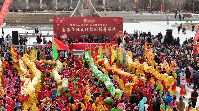 活动在富有金昌地方特色的节子舞、广场舞、舞龙舞狮等节目中拉开序幕。