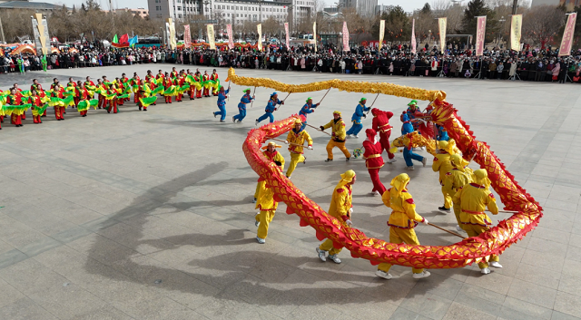 陇原儿女心向党,龙腾鼓舞贺新春。2月19日(农历大年初十),由金昌市文化广电和旅游局主办,金昌市文化馆承办,永昌县文体广电和旅游局、金川区文体广电和旅游局协办的金昌市2024年社火秧歌闹新春活动在金昌市人民文化广场精彩上演,展现金昌广大人民群众团结向上、奋发进取的精神风貌。
