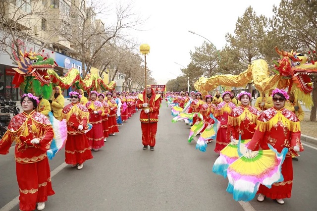 上午9时许,来自永昌县、金川区的16支优秀社火展演队伍分别在金川公园和天泰苑市民公园集结,随后按照规定路线进行巡演。花车、舞龙、舞狮、社火、秧歌……巡演队伍所经之处鼓声铿锵、彩扇飞舞、热闹非凡,吸引着沿途市民驻足观看并拿出手机记录这喜庆的场景。