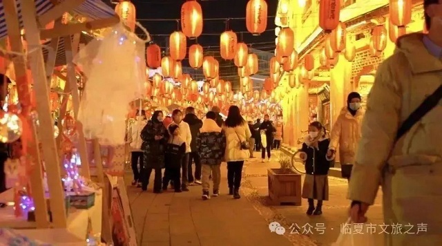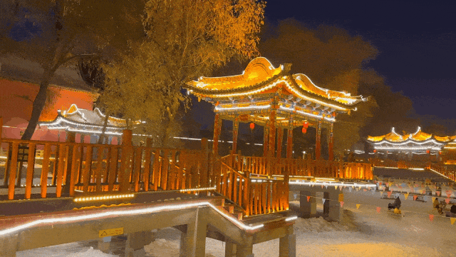走进临夏市人民红园,各色花灯流光溢彩、璀璨夺目,亭台楼阁等古建筑在灯光的照耀下美轮美奂,散发着浓浓的年味,游人们沉浸其中,整个园区被喜庆祥和的节日氛围所笼罩。