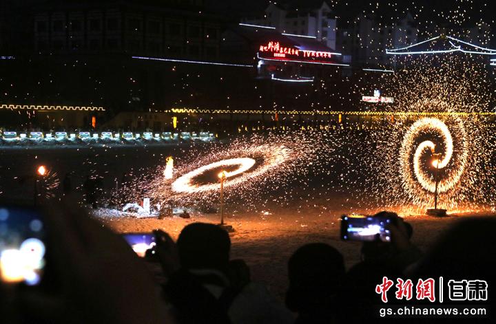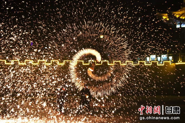 敦煌“打铁花”历史久远,起源于唐宋,后经千年演变,成为春节期间一项富有地方特色的民俗文化活动。(张晓亮 王斌银)