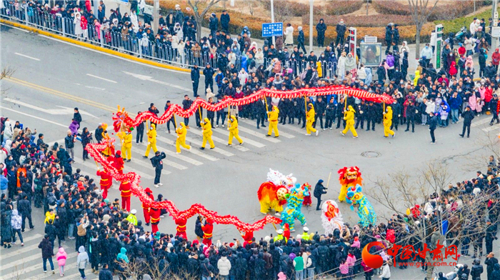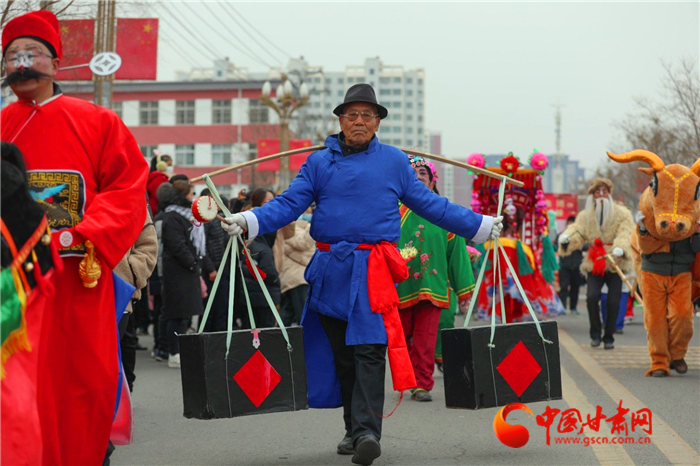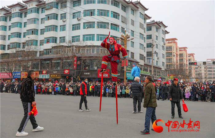 上午9时,来自莲花镇、五营镇、陇城镇、郭嘉镇、秦安血浆站等17个镇5个行业企业的1300余名队员们伴着寒风雪花,以特有的喜庆方式向全县群众拜年,为全县各族群众送上了一份别具特色的新年礼物。