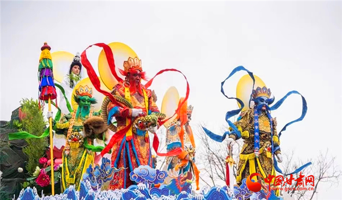 最热闹的莫过于踩高跷了,婀娜妖娆的走步、妩媚流盼的眼神,身着华丽服饰、脚踩3米多的高跷舞者如千军万马般从远处走来,他们时而变换队形,时而舞动身姿,气势磅礴的场面令人热血沸腾,带动传统高跷表演在整个表演队伍中火爆“出圈”。