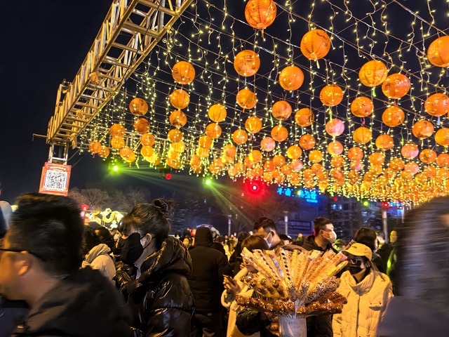 春节期间,庆阳市区主要街道和公共场所被五彩斑斓的彩灯装点得格外亮丽。西峰区岐黄大道、长庆大道、兰州路、朔州路、庆州路、东西大街等城区6条主干道行道树上悬挂着诗词灯、香包灯等各式各样的彩灯。和谐广场、人民广场、周祖广场、东湖公园西门广场摆放了13处大型节日灯景。在城区广场、高速路口、企业驻地等设置小型街景28处。天富亿龙灯嘉年华更是让城区充满年味。环县环州故城华灯连绵,映照静谧幽深的群山流光溢彩。宁县依托宁州不夜城旅游项目,开展“灯火宁州,瑞龙逢春”新春灯会,构筑古风灯会奇境,千姿百态的璀璨花灯,科技感十足的“梦幻光影秀”,惟妙惟肖的“芈月人像”,以义渠古国为背景的精彩演艺以及各类特色美食,吸引大批游客来感受梦幻的新春奇境。各县(区)还举办了新春文旅年货节等消费活动,张灯结彩喜迎龙年春节,让庆阳大地一片欢乐祥和。