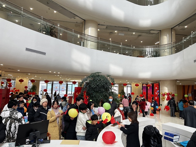 “迎新春猜灯谜闹元宵”活动为读者精心准备了灯谜300余条,奖品600余份,灯谜内容涵盖文化类、人名类、地名类、字谜类、词语类等,有奖竞猜活动集娱乐性、知识性、趣味性于一体。现场读者热情参与、积极竞猜,有年纪较长的老年读者,也有天真活泼的小读者,有的独自思考,有的互相讨论,有的仔细揣摩,猜对灯谜的读者赢得现场的掌声,一个个灯谜所在之处,留下了一处处欢声笑语。