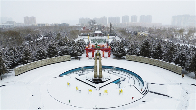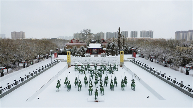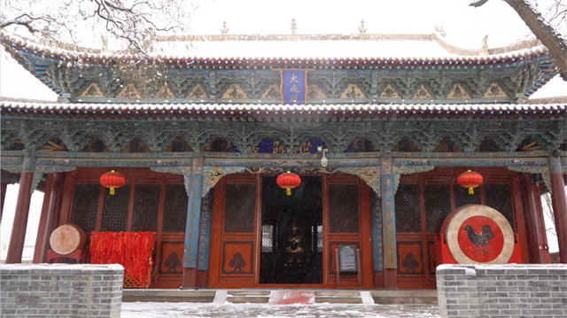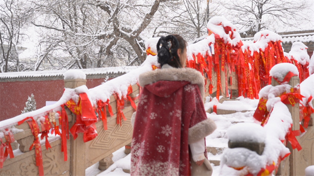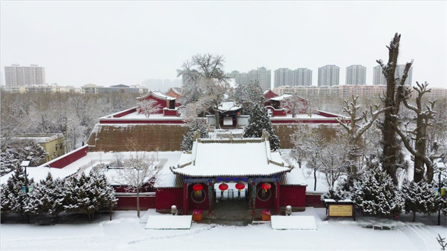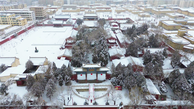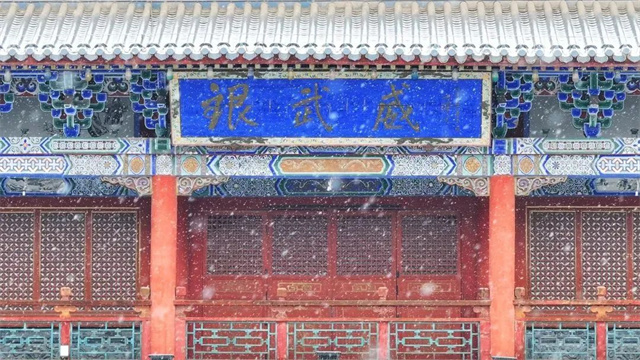 凉州白雪覆盖的红墙金瓦