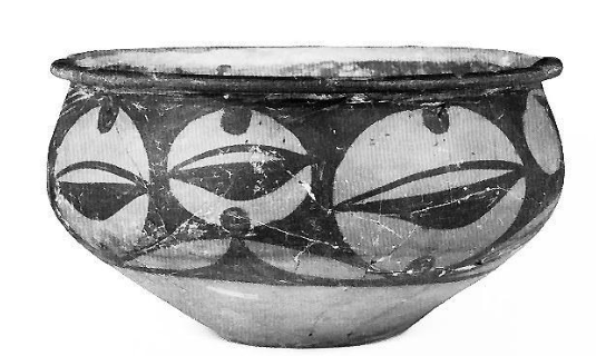 展厅陈列的宽带纹钵、鱼纹盆、彩陶葫芦瓶主要是仰韶早期彩陶的代表作。其中鱼纹图案是仰韶文化的标志性纹饰,从最初的写实风格演变到抽象化、简单化。陈列的几件鱼纹盆清晰地显示了这个变化过程。中期彩陶构图以弧线为主,线条流畅柔美,图案华丽精巧。常见纹饰有弧形三角纹、迴旋勾连纹、花瓣纹等,表现出大自然生机勃勃、欣欣向荣的景象。展出的典型器有三角纹彩陶钵、网格纹彩陶盆、勾叶纹彩陶盆等。晚期彩陶数量虽呈下降趋势,但工艺却比中期更为成熟,大型彩陶器以及内壁绘彩的制作方法开始出现。常见的纹饰有弧边三角形、圆点圆圈纹、漩涡纹、网格纹等,还有个别蛙纹、犬纹。锯齿纹彩陶壶、花瓣纹彩陶盆、弧三角网格纹盆均为这个时期的精品佳作。该时期流行的一些彩陶元素如内彩、锯齿纹、平行线纹、漩涡纹等被后世的马家窑文化吸收继承并发扬光大。