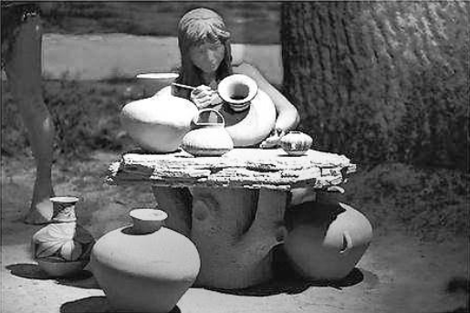 先民们发现黏土遇水后可以塑形,而被火烧制的土或者黏土因落入火堆变得坚硬定型,于是发明了陶器,这是人类的伟大发明之一。大约在一万多年前,一些开始定居、从事农业的人们,需要大量烧煮的炊器、盛储食物和存放用水的器皿以及后来逐渐产生需要的随葬品、祭祀礼器等。在漫长的生产实践中,人们终于发现,黏土加水可以捏塑成自己需要的各类形状,再经过一定温度的烧烤,坚固而耐用的陶器便应运而生。这是土与火的艺术,也是人类智慧的结晶。大地湾一期的陶器是迄今为止西北地区时代最早的一批陶器。器型有圜底器、三足器、圈足器等,制法为模具敷贴泥片。之后的仰韶文化,制陶方法则改为泥条盘筑法,技术水平不断提升,器型变为以平底器为主,增加了器物的稳定性。随着社会经济文化的发展,陶器的种类日益繁多,用途越来越广泛。在生活用品和生产工具之外,古代先民还制作了许多妙趣横生的陶塑艺术品。