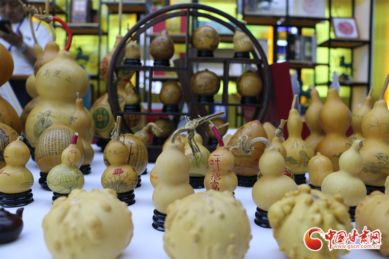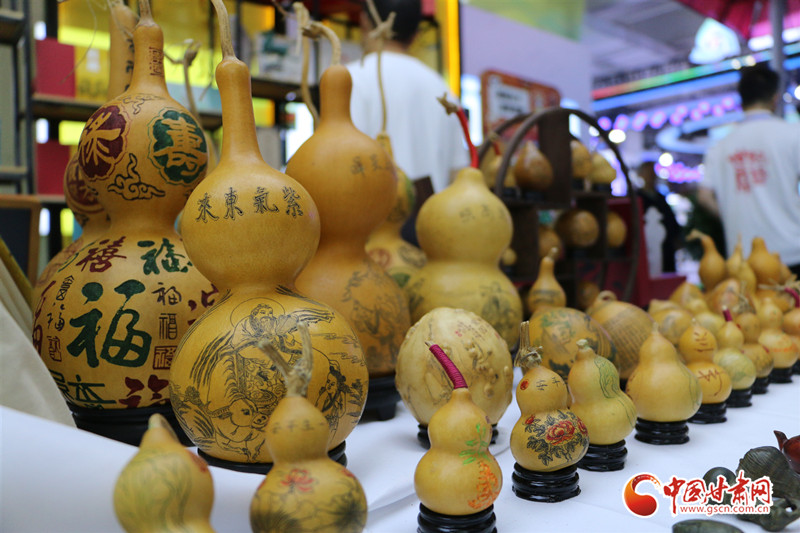走进第三十届兰洽会非遗文创馆,陈氏雕刻葫芦的第二代传人陈兵正在展台前为驻足参观的群众讲解着刻葫芦的过程。