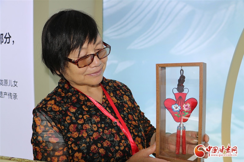 “我是第一次见这样的荷包,比我们平时在市面上买到了荷包多了一个‘马尾编’,刚刚听了制作的方法,其实工艺还挺复杂的,但成品很特别也很好看。”前来参观的余女士说。(西北角·中国甘肃网记者 刘姗 余守萱)