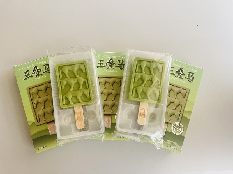 “作为穿缀在皮袍上或腰带上的装饰品,三层伫马铜饰牌不仅展现出春秋战国时期沙井文化先民杰出的青铜铸造工艺,更可见先民们对马的情有独钟。”李勇杰说,今夏,金昌市博物馆推出抹茶味的“三叠马”文创雪糕,造型简洁逼真,口感细腻绵长,正契合夏季游客群体的消费需求,希望文物也可以很“美味”,让馆藏国宝级文物更加深入人心。