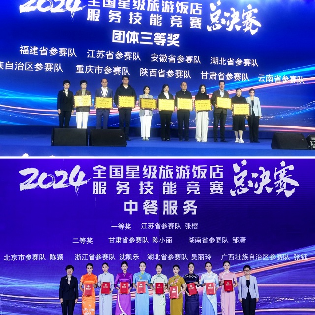 10月24日,由文化和旅游部、中华全国总工会、共青团中央、全国妇联共同主办的2024年全国星级旅游饭店服务技能竞赛在湖南省长沙市圆满落幕,来自31个省(自治区、直辖市)的124名选手参与了此次竞赛。经过激烈角逐,甘肃省参赛队荣获团体三等奖,选手陈小丽荣获中餐服务项目二等奖,选手牛可可、何莲、王昱桥分获西餐服务项目、客房服务项目、前厅服务项目优秀奖。参赛佳绩创甘肃省参加此项竞赛以来最好成绩,实现了历史性突破。