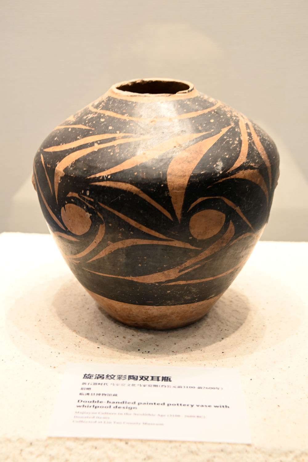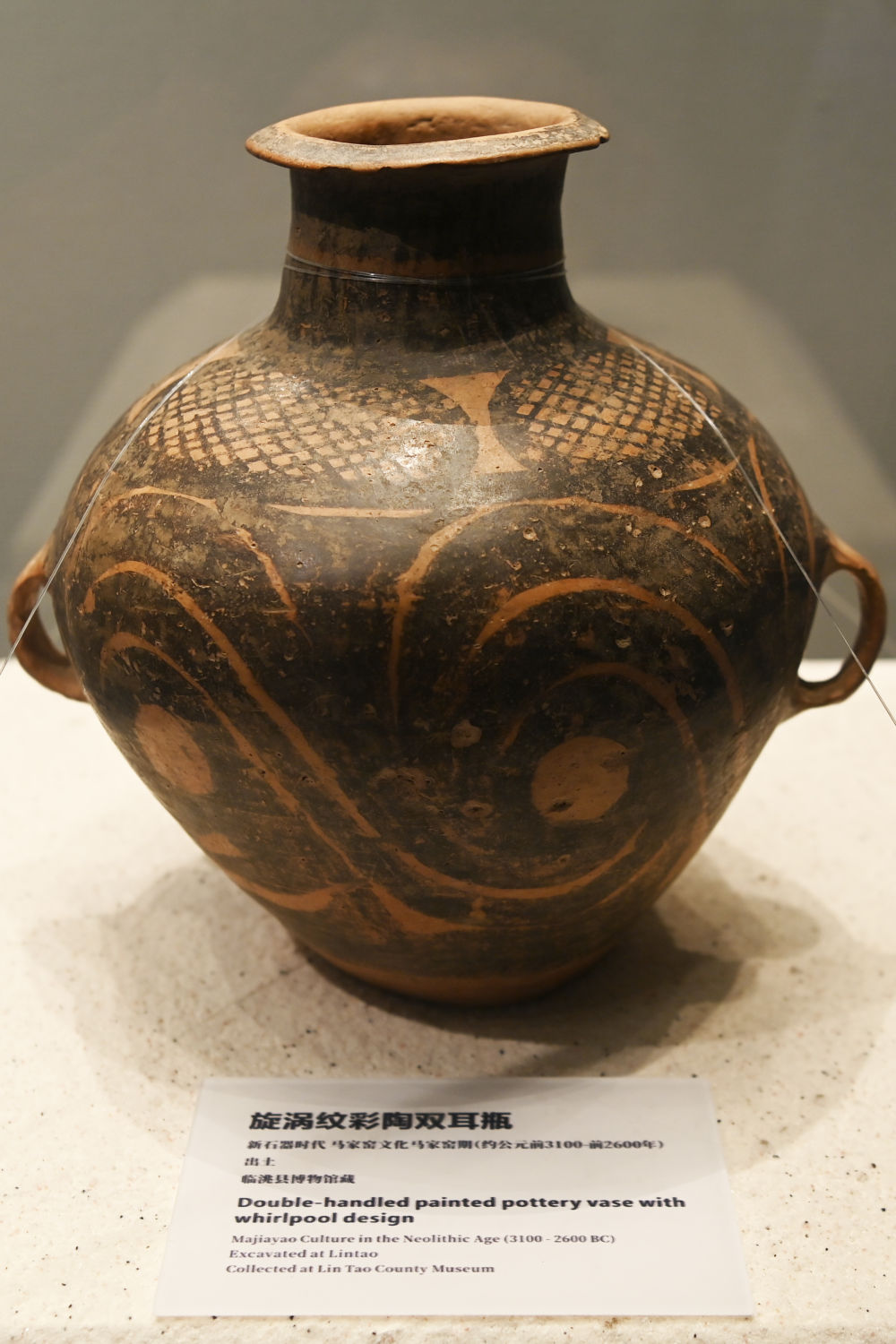 这是在临洮县博物馆拍摄的马家窑文化马家窑期的彩陶。新华社记者 范培珅 摄
