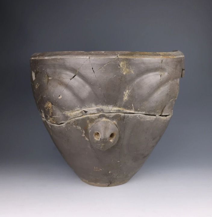 图为甘肃省定西市临洮县寺洼遗址出土的马家窑类型泥质灰陶。(甘肃省文物考古研究所供图)