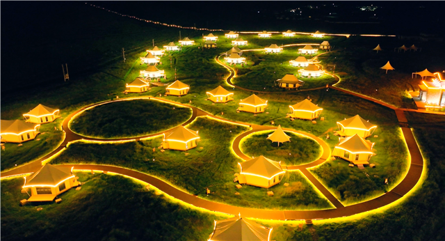 踏入营地,一顶顶洁白的帐篷错落有致地分布在草原之上,帐篷内设施齐全,温馨舒适,既保留了露营的野趣,又不失家的温暖。清晨,你可以走出帐篷迎接草原上清新的晨风;傍晚,天边的晚霞将雪山和草原染成一片绚丽的色彩;夜幕降临,你可以躺在草原上望着璀璨的星空,听着虫鸣与微风的私语,寻得一方宁静与清凉。